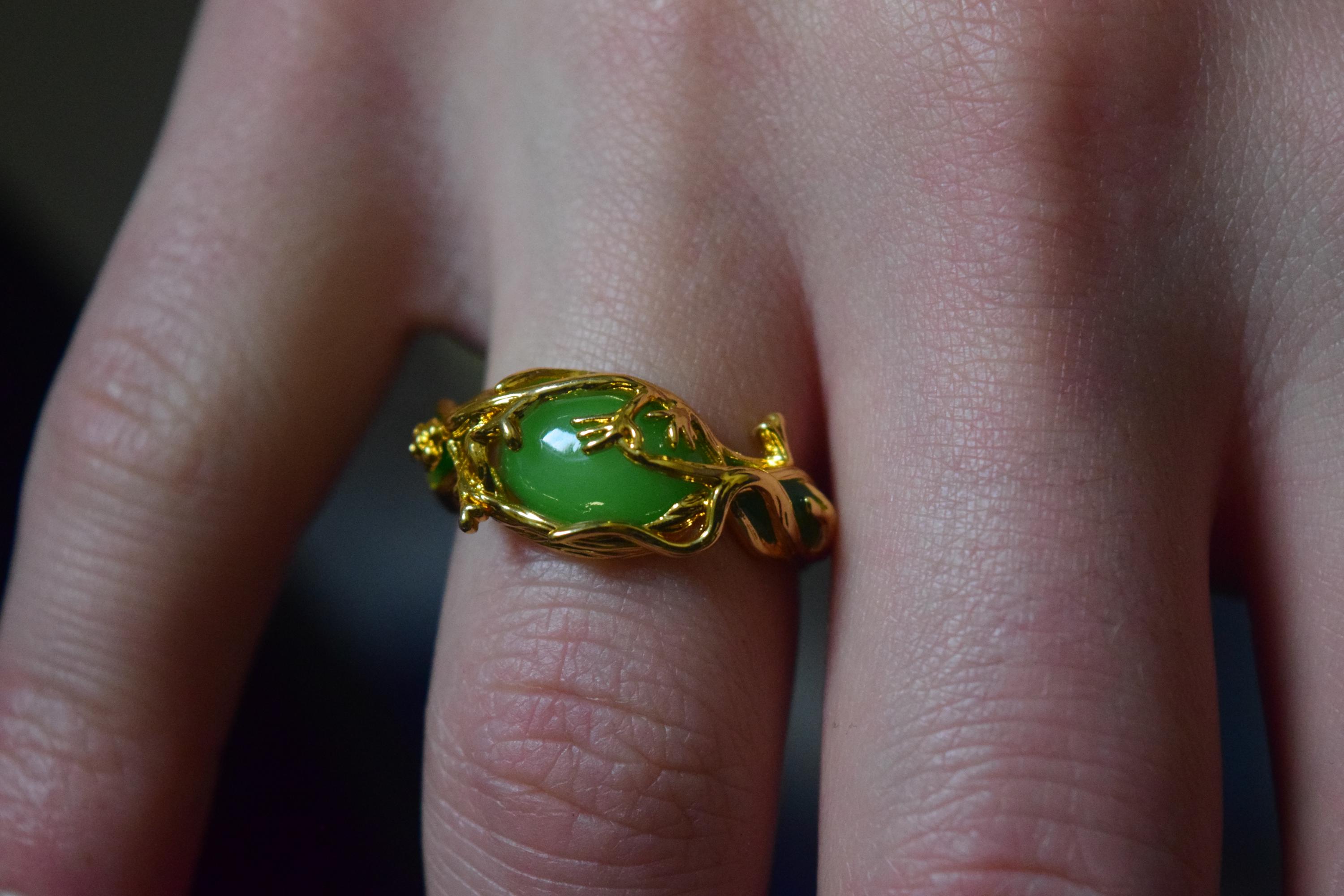 Awaken your inner Druidess with this mystical ring inspired by ancient magic and shadowed forests. Twisting vine and branch details in antique gold and deep green cradle a glowing emerald-toned stone, as if grown by nature itself. Powerful, feminine, and otherworldly—perfect for witches, pagans, Gothic souls and lovers of dark fantasy.